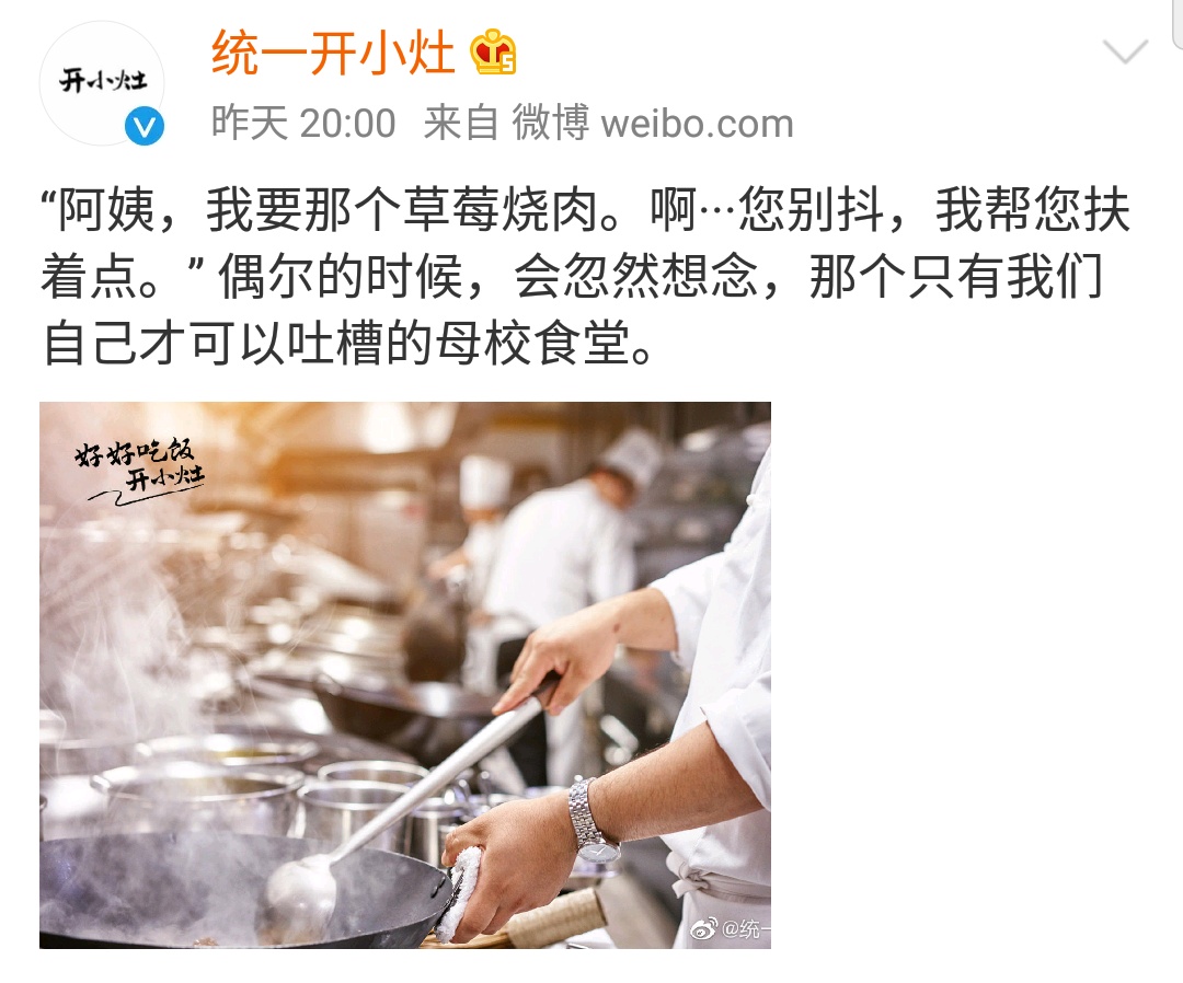 而在肖战的代言当中,有一个是小编本身也比较喜欢的,那就是统一的开小灶系列。这一系列是一些自热视频,尤其是一些自热米饭。要说速食的话,各个品牌都有,感觉好像也没什么不同的啊。但是其实看了统一开小灶的微博,小编还是很喜欢他们的一些文案的,很温暖的感觉。