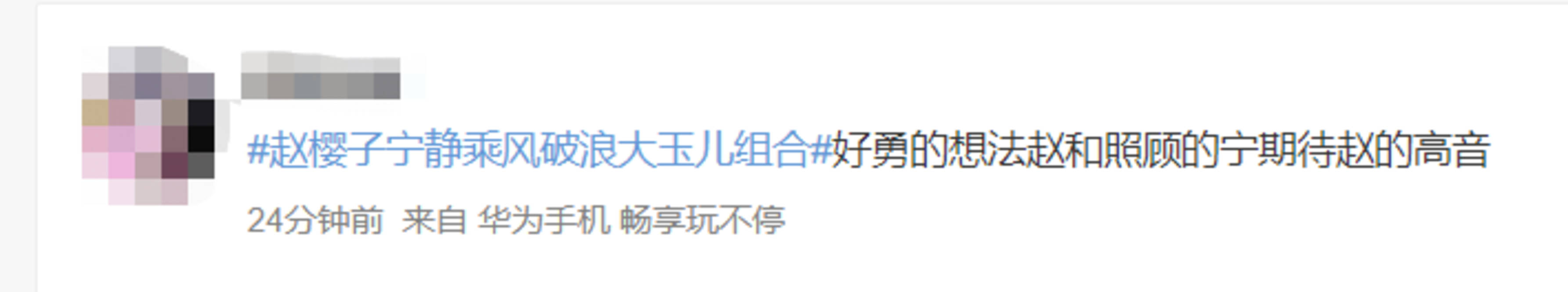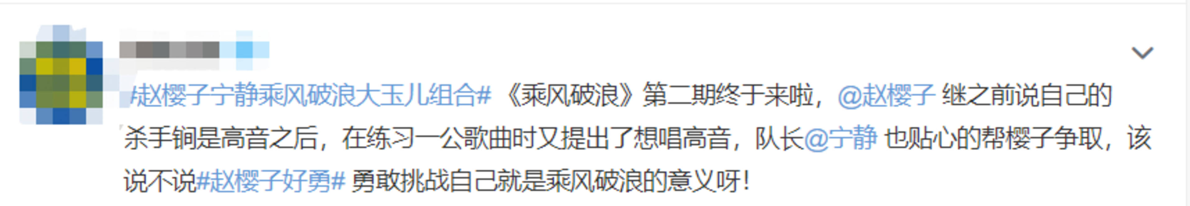 然而,当有你想争取的团队、歌曲和表演风格时,赵樱子是直率和勇敢的。许多人也表达了对赵樱子性格的欣赏。“也就是说,赵樱子也是一个乘风破浪,做事敢于为自己争取的大姐姐”。