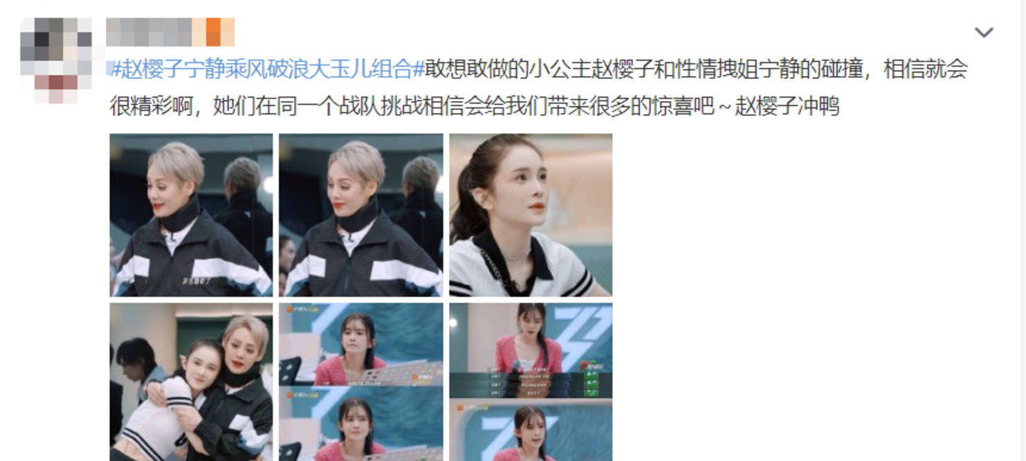 然而在今年的《乘风破浪》,我和赵樱子成了“大上她团”,大家突然发现,在赵樱子面前当“大姐姐”的宁静,居然是温柔的。
