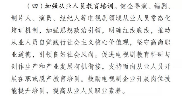 针对电视剧技能人才培养问题,《规划》指出:围绕电视剧拍摄制作流程,加强摄影、录音、美术、服装、化妆、道具、烟火、置景、灯光、特效等技能人才培养培训和职业教育,建设高素质电视剧技能人才队伍。