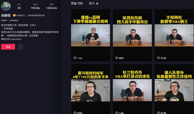 同样水土不服的,还有从抖音来B站的体育主播徐静雨。体育类内容一直并非B站的强势垂类,反倒在抖音上能拥有更多的受众。目前,徐静雨在抖音的账号仍有150万粉丝(自去年8月起再未更新),虽然录播视频在B站很受欢迎,但其在B站的账号仅有42万粉丝,大航海数量仅47人。