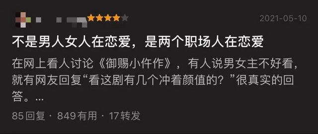 对于职场剧最常见的调侃,就是“编剧没上过班”。事实也的确如此,不仅编剧没上过班,导演和制片人也没上过。所以国产剧拍得最好的行业,还是娱乐圈,因为那才是他们的职场,《怪你过分美丽》就在豆瓣拿到7.7分。