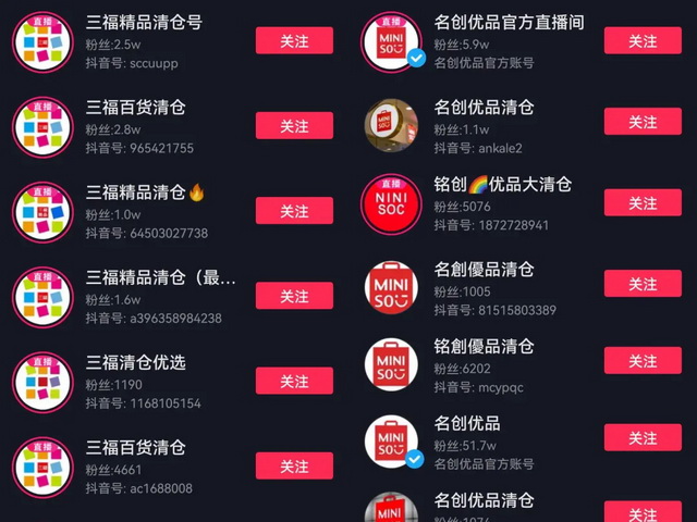 其实,抖音平台上还有另一类的清仓号,虽然也做着清仓内容,但它们并不会打着高端品牌的旗号。只是前期起号比较困难,直播投入也比较多,但基本不会有涉嫌违规和侵权的内容,能做上长期买卖。