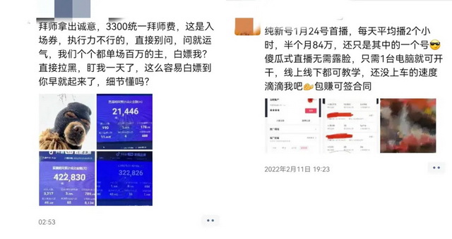 另一位号主“乾坤”在通过好友后先发了一段话:“无人直播模式,纯新人纯新号3天即可上手,0投资只需电脑,线上陪跑9000,线下实操15000,包赚。”