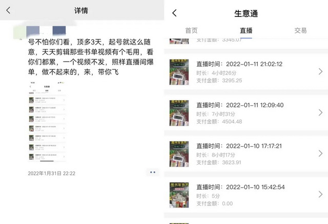 恩加就表示,自己已经在考虑转型了,要组建直播团队做“正规清仓号”,“现在搞的是快钱,之后我们要招主播做服装清仓号了,那个更赚钱。其实不少同行早就开始转型了,还有些同行同时做蹭大牌的清仓号和普通清仓号,能赚钱就多赚点。说实话,你现在看到的什么图书清仓按斤卖,羽绒服几十块清仓,说不准幕后都是我们这行的人。”