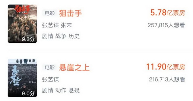以今年春节档为例,张艺谋的《狙击手》虽然拿下了档期内最高评分,但到2月下旬,票房才终于突破了5亿,而去年五一档上映的《悬崖之上》,在豆瓣评分相近的情况下,则拿下了近12亿票房。之所以会有如此大的落差,正是因为《狙击手》选错了档期。
