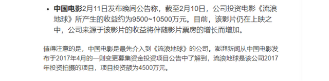 影企的疯狂并不难理解。2019年《流浪地球》票房20亿的时候,中国电影曾发公告称,公司从该影片上获利约为1亿元。按照最粗暴的方式换算,中影最终有望在该片上获利超过2.5亿元,扣除成本后,仍然有2亿元左右的利润。这个数字,即使是在上市影企中,也能碾压不少公司一年的收益了,而中影为此仅仅付出了4500万的成本,约占总投资的七分之一,这正是大档期的魅力和可能性所在。