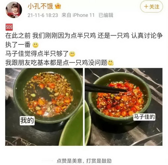 在互联网时代,被放大的生活碎片,或许过分地入侵了素人嘉宾的生活。马子佳和孔汝淳就曾因为一条“吃椰子鸡”的Vlog深陷舆论风波,在vlog里,孔汝淳要点一只鸡,而马子佳坚持点半只就够吃了,最后还疑似动怒。该条视频发布后招致网友群嘲,二人被称为“半鸡情侣”,最后,不堪其扰的孔汝淳选择公开回应,给马子佳“挽尊”,此事才草草了结。