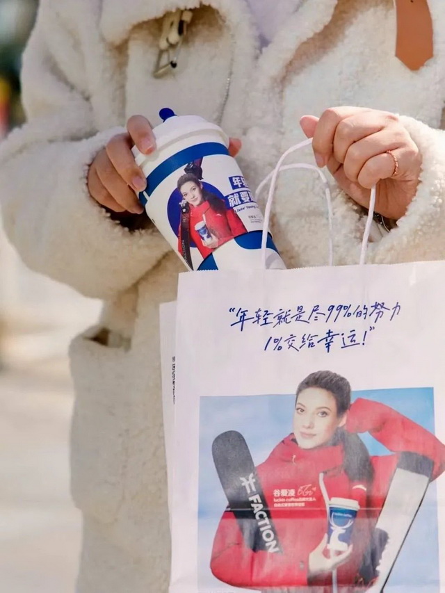 △谷爱凌夺冠后,瑞幸第一时间更换了产品包装