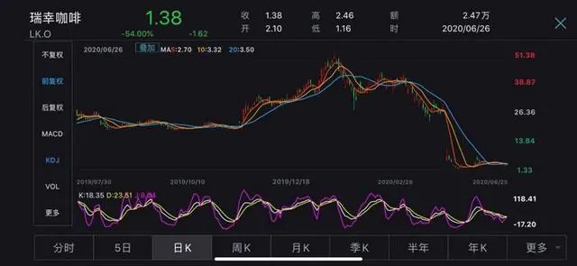 造假的代价很大,瑞幸股价暴跌81.6%。2020年5月19日,纳斯达克通知瑞幸必须退市。2020年6月29日,瑞幸从纳斯达克退市,股价已从最高的51.38美元/股跌到仅剩1.38美元/股,成为名副其实的“仙股”。