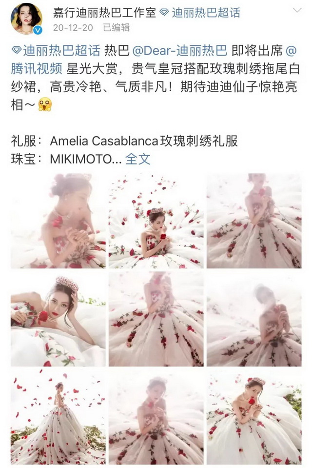 曾经的红毯上艺人一较高下要拼品牌、拼高定、拼全球首穿,现在只要出现在镜头前的那一刻足够美貌便能留下话题——迪丽热巴亮相2020年星光大赏的玫瑰纱裙就只是婚纱品牌,但对当晚收获的赞誉来说,几乎没有丝毫损伤。