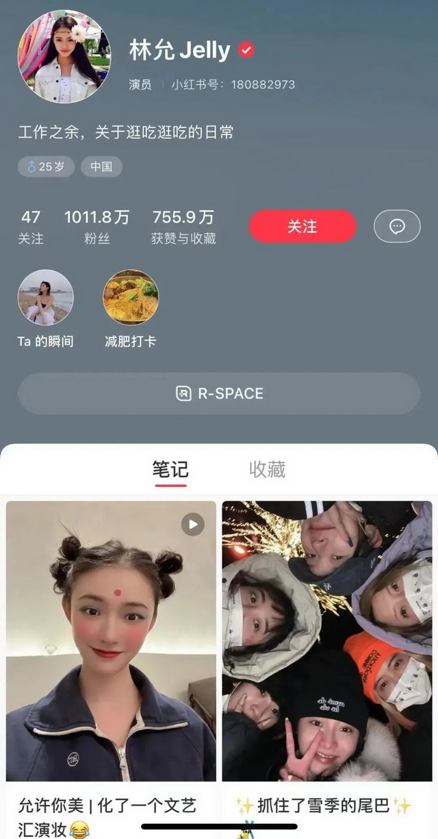 2017年林允入驻小红书,在发布的帖子里干脆利落地卸妆护肤,又直接晒出去美容院保养的图片,收获多条称赞她真实、接地气的评论。林允的小红书粉丝已经超过千万,成为小红书最早的头部明星之一。