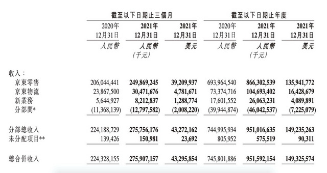 零售、物流、新业务,三个板块构成了京东的营收。