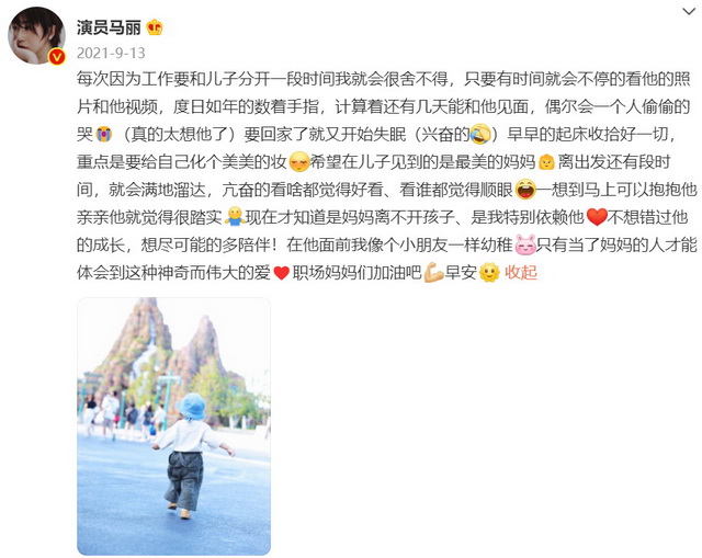 “平衡不了,忙工作一个多月见不到儿子我就崩溃了,他是我的加油站。”成为母亲的马丽一边靠着家庭生活给她的能量和养分,一边继续拼着自己的演艺事业。怀孕七个月时还在工作,生完孩子三个月又开始工作。因为有项目特意为了等她改了时间,因为她对朋友和合作伙伴做出的承诺,她无法停下脚步。