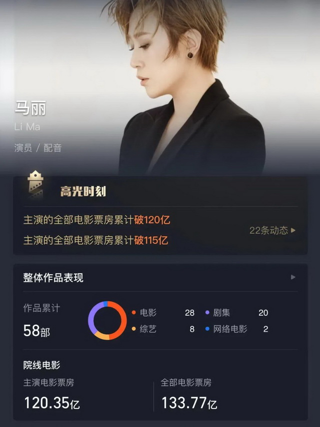 “我们很多前辈、同行,大家都很努力地在做戏,只能说我可能比较幸运,赶上了喜剧市场比较好的年份,作品多一点,有了百亿的称号和机会。”消息刚出来的时候,马丽一直都跟团队强调她不需要这些宣传,更不需要热搜和炒作。“是一百亿还是一千亿都不重要,一个演员能做到作品被观众喜欢、认可,这个才有意义。”