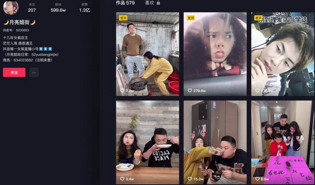 月亮姐街现实中是一家女装店店主,从事服装行业已经十五年。加上抖音,他们曾创业三次,都是卖衣服。