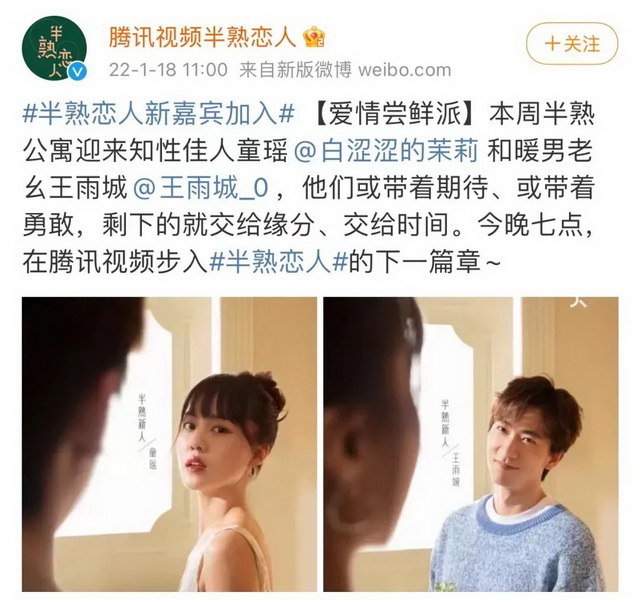 《半熟恋人》找到了与以往恋综不同的切口——聚焦30+男女的情感,体现当下熟龄男女的爱情观。在感情中,不论是追求还是放手,他们都显得更加体面、成熟和直接。从反馈上看,30+的爱情确实击中了大家的兴趣点。社交平台上,衍生出一系列具有现实意义的情感话题,比如#爱情中的先来后到重要吗##30岁还相信爱情吗##人们为什么一直喜欢看恋综#等等。