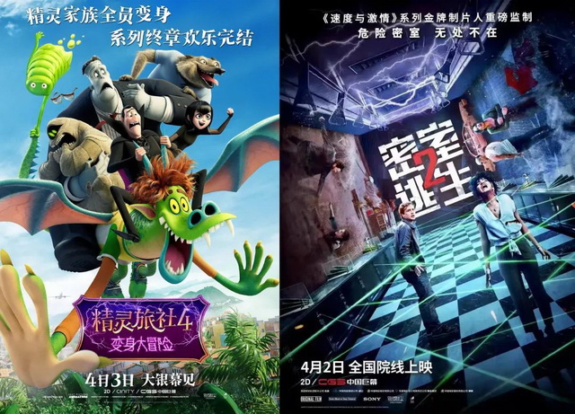 再看清明档的两部新片,《精灵旅社4:变身大冒险》在假期头两天还能每日收获1000万以上的票房,到第三天直接降至688万;《密室逃生2》也是从700万左右的单日票房直降至462万。这说明两部影片积累的想看人群,在上映两天内已经基本释放完毕,到了第三天观众已经是无片可看的境地,不再有新增人群对两部新片感兴趣——引进片的观众基本盘已经严重萎缩。