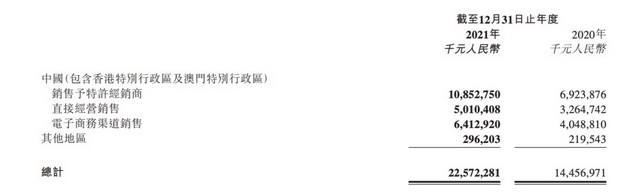 2021年,全国实物商品网上零售额108042亿元,占社会消费品零售总额的比重为24.5%,。电商事实性地成了品牌经营的基础设施,李宁在财报中表示,电商板块已经形成了消费者触达、内容教育、引流进店、购买评价反馈的线上经营闭环。同时,天猫旗舰店会员体系,微信小程序等私域也使得品牌可以通过线上为线下门店进行导流,在更多的场景对消费者进行运营。