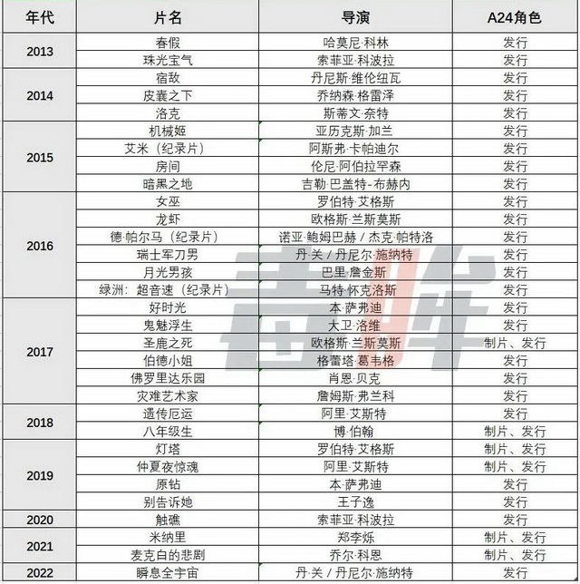 电影是艺术,也是工业品,在看重电影的娱乐属性且风险自担的美国电影体系之内,观众或许没可能从A24的电影乃至美国电影中找到如欧洲大师式的杰作,但A24的专家们身体力行地展现了具有绝佳艺术鉴赏能力的,负责任的产品经理人们应有的素质。