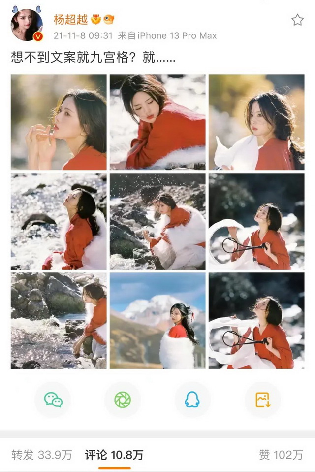 另一个屡试不爽的营销点是以鞠婧祎为代表的“美貌挂”,只要能打造出足够惊艳的妆发和造型,就能在关注娱乐圈的网友那里收获良好的印象分。美貌是女明星的“必杀技”,欧阳娜娜、Angelababy、杨超越等人都曾因为一套足够惊艳的造型而成功“出圈”。