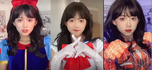 大话题变装之下,是网红们根据话题的二次乃至三次创作。以梅尼耶为代表的卡点变装,刀小刀sama为代表的甩头变装,都是一时流行的视频形式。在这个大话题之下,还有诸如“敬礼变装”“踢腿变装”“飞吻变装”“拍手变装”等多种形式。可以说,只要是人体动作,几乎都被抖音网红们开发殆尽。