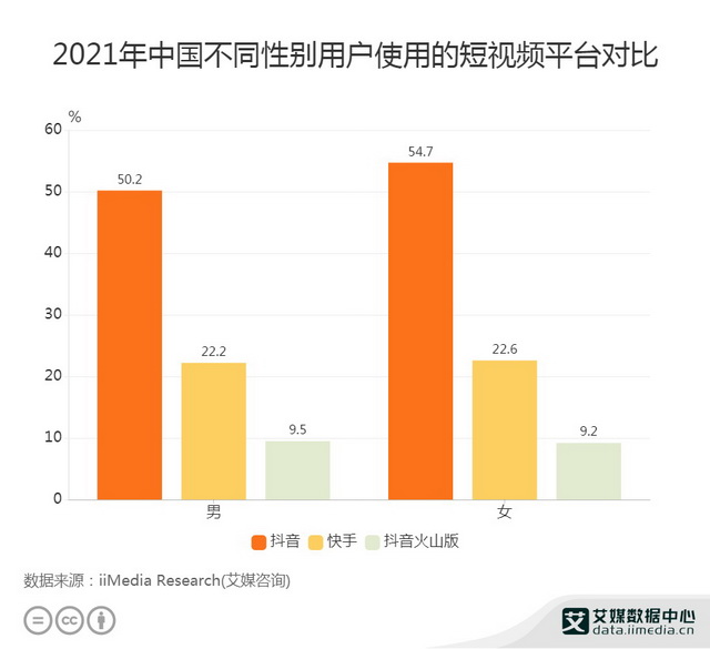 艾媒咨询数据显示,2021年,?性使?抖音的占比为为54.7%,使用快手的占比为22.6%,均超过男性用户占比。使用短视频平台的女性用户的增加、女性意识的崛起,使得更多围绕女性展开、以女性为主的内容创作的需求增加,而在许多情侣、夫妻、亲子类账号中,女性往往都是居于从属地位,但在闺蜜类账号里,“双女主”和“大女主”才是最常见的模式。