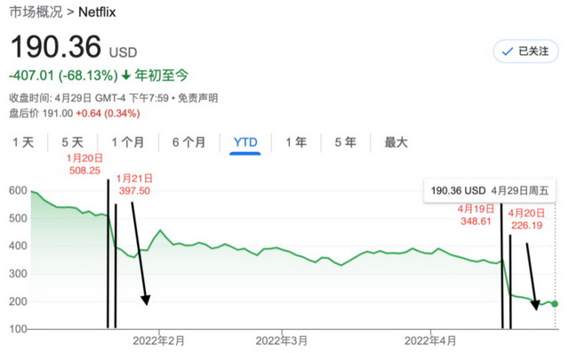 作为流媒体的“扛把子”——奈飞,自4月20日发布一季度财报数据后股价闪崩暴跌35%,在全球互联网行业引发震动。回顾其年初至今的股价走势,在投资大佬们陆续离场后,总市值已然蒸发了70%。