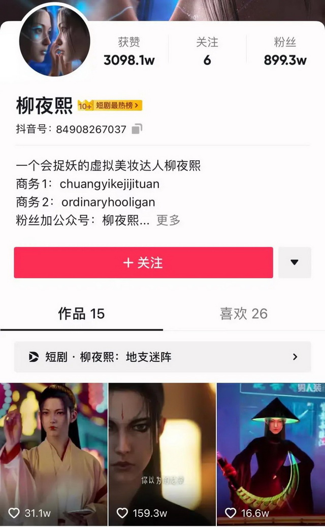 最具代表性的就是会捉妖的美妆达人“柳夜熙”,她的一条视频就容纳了悬疑、剧情、美妆及后期特效等多种热门的内容分类,首秀视频就涨粉百万。一时间,各种围绕柳夜熙的仿妆、cosplay等二次创作内容在平台爆发,她也一度成为了当时最具话题度的虚拟形象。