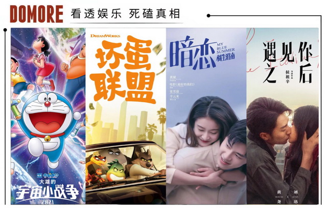 原因不难理解,和过去的进口动画黑马一样,“合家欢”与“高口碑”成为了必不可少的两大因素。相比之下,端午票房第三名的《哆啦A梦:大雄的宇宙小战争2021》(以下简称《哆啦A梦》)从类型上更偏重低幼向,豆瓣评分6.3,比起7.3分的《坏蛋联盟》口碑上也有不小差距。