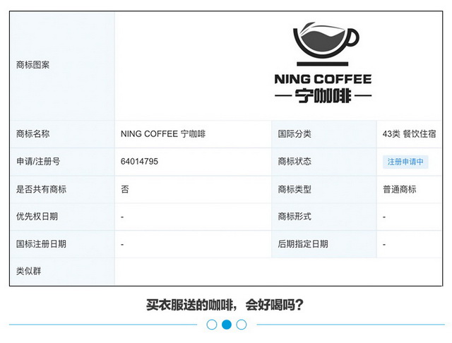 企查查数据显示,李宁体育(上海)有限公司于2022年4月15日发起“宁咖啡”商标注册申请,国际分类为餐饮住宿。