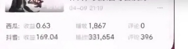 除了视频类型,发布的平台也是影响因素。西瓜视频的千次播放单价会比抖音略高,但是由于用户基数,播放量通常远不如抖音。一位从业者告诉毒眸,他在西瓜视频的600多万播放量的视频,收益达两万多元,但在抖音同等播放量可能只有十分之一收益。但这种爆款视频可遇不可求,有些视频,在西瓜的播放量收益可能只有个位数,但分发到抖音还能维持相对不错的数字。