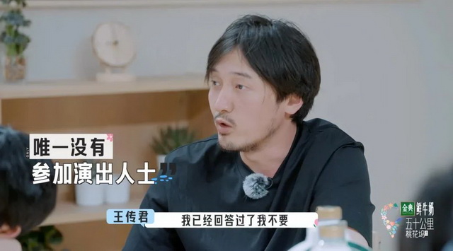 之后,坞民们商量表演节目的事。所有人都自愿或假装自愿参与其中,只有王传君坚定地表示不会参加表演。他认为:“我们大家没有那么熟,我不想这么近的距离在他们面前表演节目。我们不该为一个固定的任务,为了完成它而完成它。”