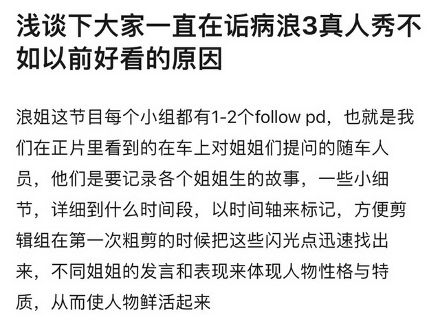 “了解艺人”会反哺我们的策划,因为我们要预判这样一个人在这样一个环境当中他能不能产生一些什么戏份,人与人之间的一些化学反应,这可能是我们前期要做的预判。