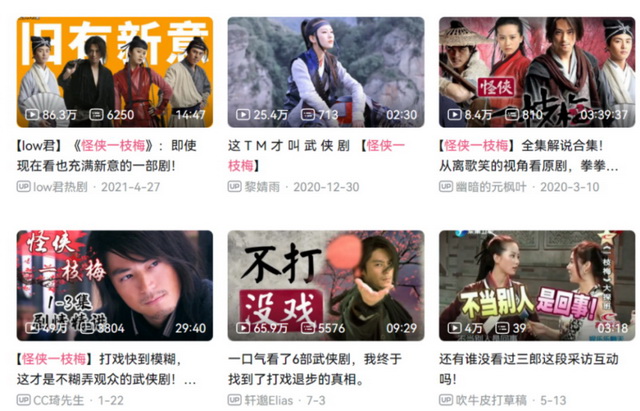 就像唐人在2010年推出的武侠剧《怪侠一枝梅》,彼时收视、网播量均表现一般,但在武侠剧多靠慢动作、脸部特写支持的当下,已经被B站不少UP主当成“打戏教科书”。