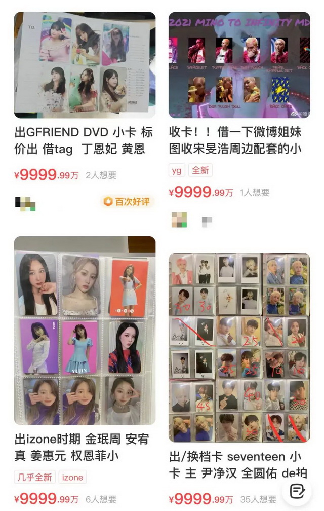 韩圈的小卡大多是爱豆的自拍照片,小卡的价格也与多种因素有关,比如爱豆的自拍水平、人气、是否限量等等。有些韩国专辑在面向市场贩售一段时间后会绝版,在这之后“入坑”的粉丝想要收藏之前的小卡,就可能需要花高价买二手。