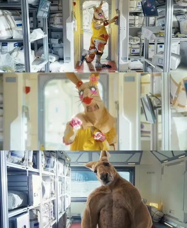 虽然要在电影里成为一只真正的袋鼠,但郝瀚的任务不是“模仿”,而是“表演”,要通过动作和表情去传达金刚鼠内心的想法。“每只动物都有自己的性格,金刚鼠也有,”郝瀚说,“暴躁是它的天性,但它也缺乏安全感,它之所以被落在月球上,可能是因为在袋鼠圈里没什么朋友。”