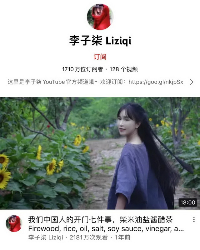 但无论如何,李子柒还是凭此超越了她所做的内容本身,并将这种外来者的视角直接带到了Youtube上。在那里,李子柒拥有1600万粉丝,是订阅数最多的中文频道。无数外国人通过李子柒的视频自以为了解了“中国”,而更多的中国人因此为傲,认为李子柒因此传播了优秀的中国传统文化。