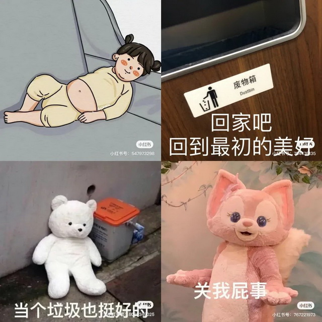 “啊对对对,你说的都对”、“这学我不上了、这班我不干了、这日子我不过了”、“努力不一定有结果,不努力一定会很舒服”、“总有人要当废物,那为什么不能是我呢?”、“当个垃圾感觉挺好的”……