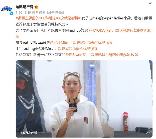 这位擅长Popping、参加过《这街1》的新生代舞者,有着谦虚、努力的标签。刘雨昕还是《这街》历史上第一位女性队长,在第五季第一期,刘雨昕在点评女性舞者小队Super Ladies时就表示,在如今这个时代,已经没有必要再为舞者贴上性别的标签。