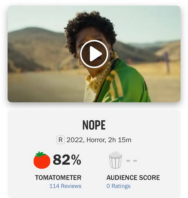 从口碑来看,《不》的烂蕃茄新鲜度为82%,低于《逃出绝命镇》(98%)和《我们》(93%)。同时,《不》在CinemaScore上的观众评分为B,而前述两部作品则分别为A-和B。若《不》能借此复刻《我们》的续航表现,全球最终有望向2亿美元靠拢。