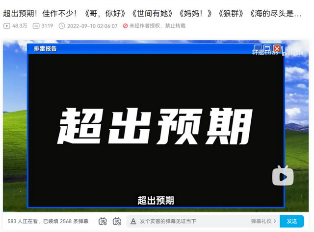 值得肯定的是,中秋档新片尽管票房成绩不佳,但整体口碑表现十分不错。《还是觉得你最好》《妈妈!》《海的尽头是草原》分别收获豆瓣7.8分、7.5分和7.3分的佳绩,猫淘评分也均在9分以上。B站过去专注吐槽的影视区UP主也一反常态,给出了“超出预期”的评价,相较于过去的档期生态来说实属难得。