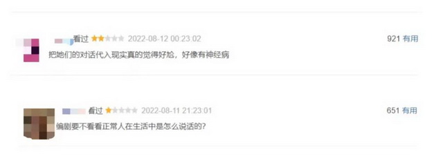 几个人自我介绍时,用的是诗词歌赋,“何悯鸿”好歹是文字工作者,勉强可以理解(虽然文字工作者平时也不这么说话),但窦骁和江疏影见面的那场戏,也在短短三分钟出现了不下10个成语。好像这年头没点文化,就不配交朋友了。