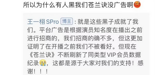 而8月最火的《苍兰诀》,则是其制片人王一栩承认的“我们招商的确不多”,因为“平台广告是根据演员知名度在播出之前进行招商的”。不过后来随着同期热度逐渐攀升,声音变成“《苍兰诀》不断刷新同类型VIP会员数据记录”。