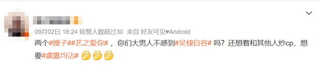 两对CP都疑似男方有了女友,于是,“嫂子”的话题词在9月1日下午冲上了微博热搜第一。不明真相的群众看到这个微博热搜,可能会完全摸不着头脑。