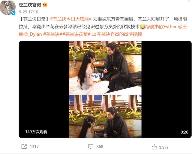 这种“吵架”似乎不是所有观众都吃的桥段,甚至有不少人因为直播的不欢而散而表示“下头”。《苍兰诀》制片人、恒星引力CEO王一栩火速在剧集超话回应:“熟悉的人都知道他们经常拌嘴,然后会光速和好,不用担心。”他还在下方回复了一位网友:“已经哄好了。”