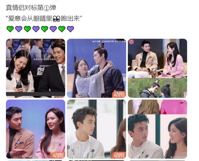 因此,在剧集播出之前,剧宣们一般都会从现有的剧集或者拍摄的花絮中,找到一些可以发酵的CP向内容,做一波推广。据毒眸观察,一般一部剧刚播出时,最先经营起来的往往是剧集角色的CP超话,这时候大家的嗑糖素材还是来源于剧情。但是到后期,随着剧集播出之后演员的互动内容越来越多,比如双人采访、双人综艺等等内容,真人CP就会后来居上。