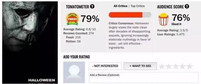 这一下行曲线也与口碑息息相关。四年前,《月光光心慌慌》的烂番茄新鲜度高达79%,创1978年原版以来的系列最佳口碑;观众也在CinemaScore上打出B+的评价,推动影片总票房在首周末后实现翻番。
