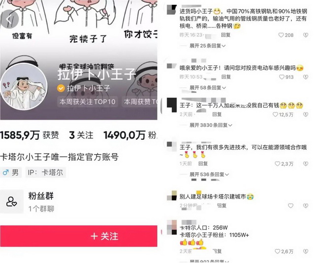 卡塔尔小王子的抖音与评论区