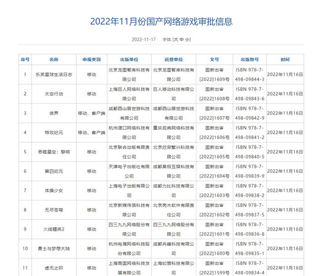 *附:11月版号名单